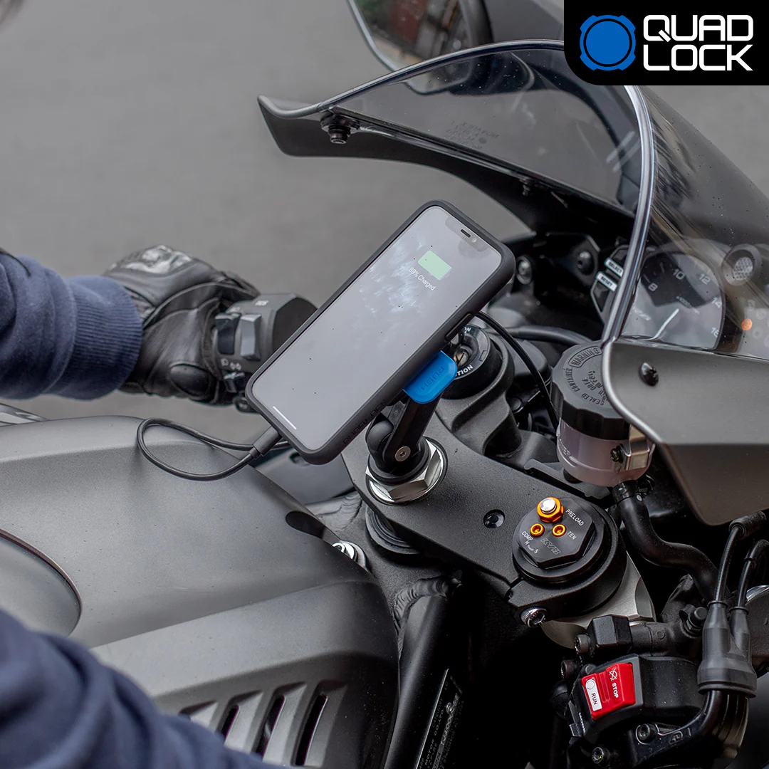 The Quad Lock® Motorcycle USB Charger integrates with your Motorcycle Mount or 1" Ball Adaptor to provide charging to your device while you ride. IP66 Water Resistant for use in wet weather.